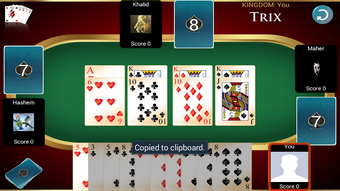 Trix is a four-player card game that takes on a cycle-style in which there are four cycles with each cycle consisting of five games. One player is the King and determines which contract to play in each of the five games.